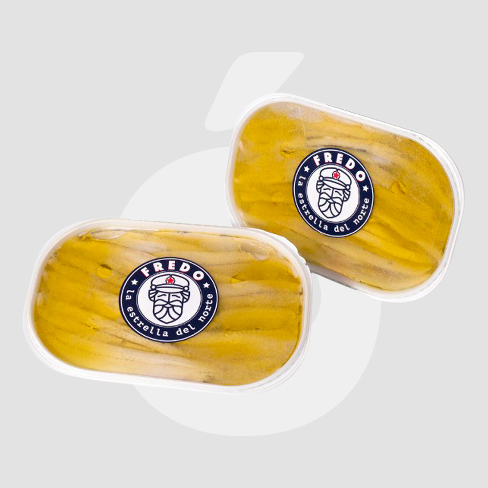 Presentados en un formato de 125 g que destila calidad, estos Boquerones en AOVE de Fredo son una verdadera obra de arte de la frescura. Su color blanco inmaculado y su disposición cuidadosa en la lata son el preludio de un tesoro de suavidad y equilibrio, donde el marinado tradicional respeta la delicadeza de la pieza, ofreciendo una textura carnosa y un brillo natural incomparable.