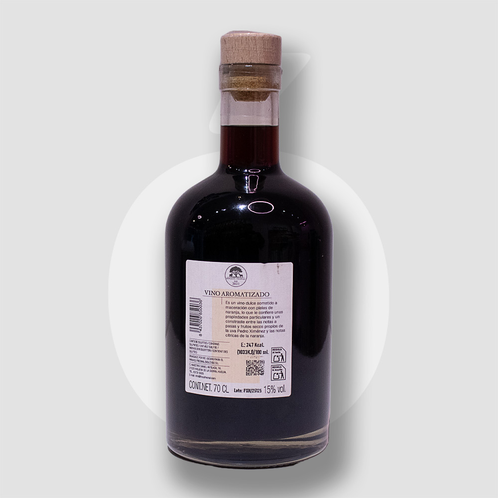 Las naranjas seleccionadas, recolectadas en su punto justo de frescura, son sometidas a una maceración artesanal de sus pieles para extraer toda su esencia natural. El resultado es un vino dulce de calidad superior, con un sabor vibrante y complejo que equilibra el dulzor aterciopelado con intensos matices cítricos y notas de azahar.